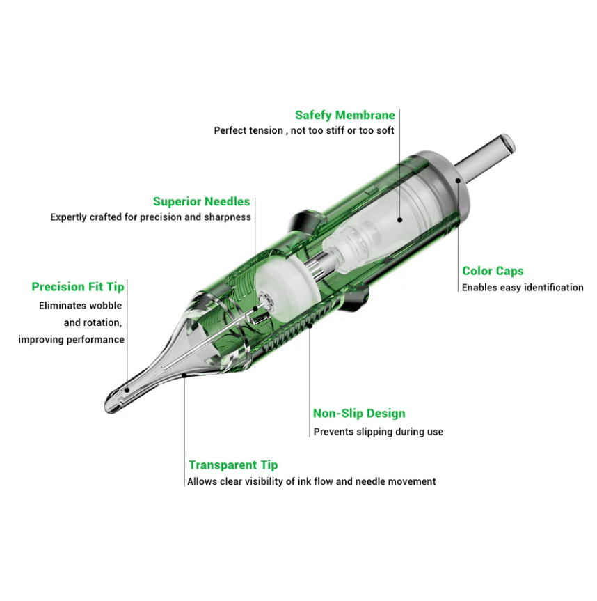 Elite cartridges adhere to top industry standards and undergo strict quality control processes, ensuring precise tips and consistent grouping. With over 100 needle configurations available, we offer a wide variety to meet all artistic needs.