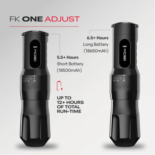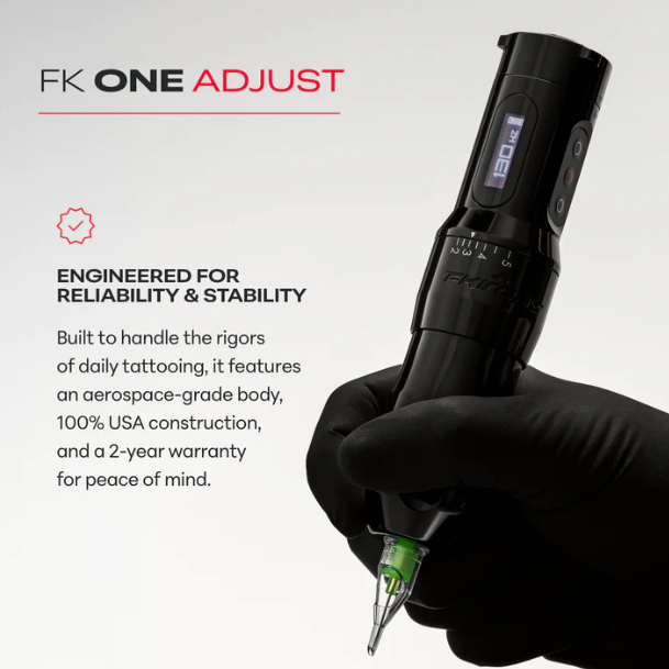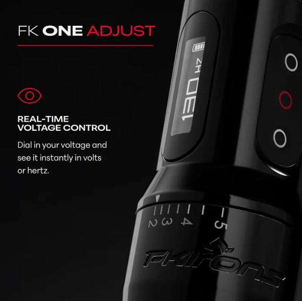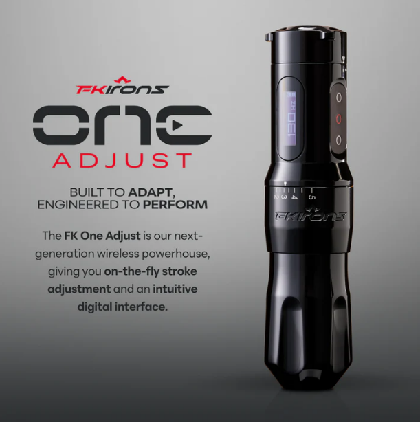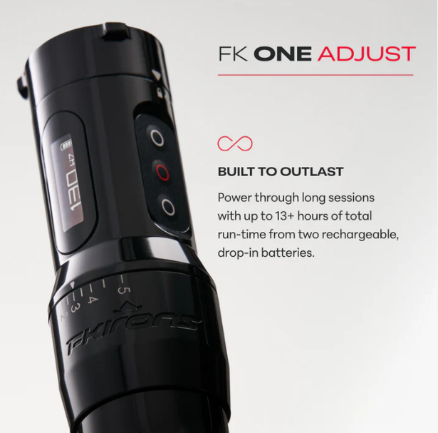 VERSATILITY WITH NO LIMITATIONS:FK OneAdjust adapts to any style or technique, so youdon’thave to choose between machines. Take on your boldest linework to your finest detailing, all with this one machine: every stroke you need is already here.